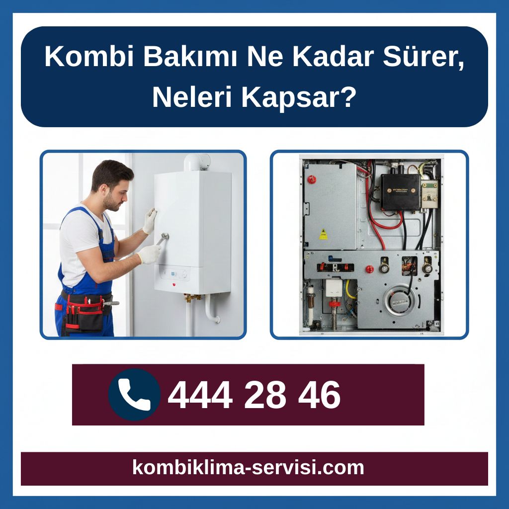 Kombi bakımı ortalama 45–60 dakika sürer ve cihazın tüm mekanik, elektronik ve gaz bileşenlerinin kontrol edilmesini kapsar. Düzenli yapılan kombi bakımı, daha düşük fatura, daha uzun cihaz ömrü ve güvenli kullanım sağlar.